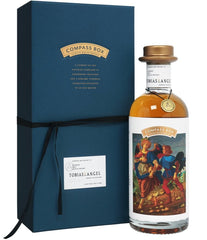 Compass Box Tobias & The Angel is a rich and elegant blended Scotch whisky crafted to balance depth and approachability. On the nose, it presents layered aromas of sweet vanilla, orchard fruits, light spice, and a touch of oak, with subtle hints of sherry cask influence. The palate is smooth and complex, featuring flavors of honeyed malt, toffee, baked apples, and soft cinnamon, rounded by a gentle oakiness and a whisper of dark chocolate. The finish is long, warm, and slightly spicy, leaving a lingering sweetness and balanced depth.